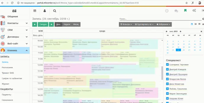 Учредители хотели каким-то образом наладить корректную запись на прием, чтобы не было пересечений, чтобы можно было бронировать кабинеты, чтобы можно было учитывать отпуска, отгулы, больничные специалистов при формировании записи на прием.